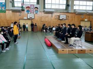 卒業式の予行練習後に、門送りの位置について、本番に向けた練習を行いました。天候が心配されるところではありますが、きっと晴れると信じています♪