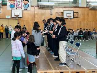 一年間お世話になった専科の先生方や支援員さん、相談員の先生、配膳員さんに感謝の気持ちを伝える会を開催しました。集会にご参加いただけなかった先生もいらっしゃいましたが、子どもたちも多くの先生方や職員に支えられていることを実感する貴重な機会になりました。