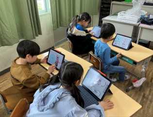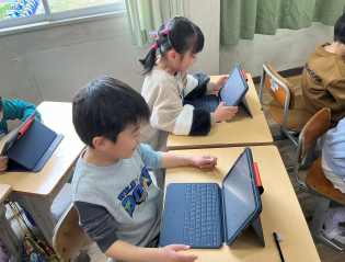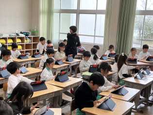 国語科で学習した「スイミー」を題材にして、タブレット端末を使ってプログラミング学習をしました。