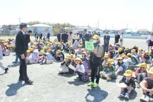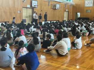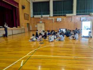 安全に登下校するための安全教室を行いました。1年生にとっては初めての出前授業となりました。自分の命を自分で守ることのできるみどりっ子に成長していくことと思います。 |