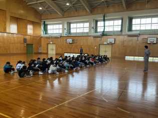 全員が避難した後、校長先生から先生たちに二次活動の指示がありました。その後、校長先生から、全員の命を守るためにどう行動したらよいのかを考えていこう。下校のときや集会のときなど、みんなが集まるときに静かに集まることが、実際に災害のときに役立つとお話がありました。普段の生活の中で、身に付けていきたいです。