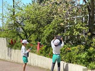 理科の学習では、屋外に出て自然の観察を行いました。一生懸命に植物や生き物を探し、写真に収めてりました。