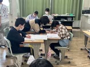 話し合ったり、教え合ったりしながら集中して学習にも取り組んでいます。さすがは最高学年! |