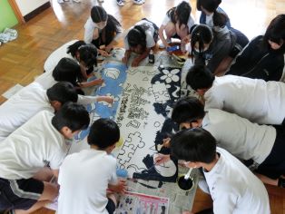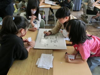 | 4月25日(金) 【級訓づくり】 6年生が級訓づくりをしていました。みんなで協力をして、作り上げることができました。 【学校となかよし】 1年生が学校の中を散歩していました。学校にはどんな先生がいるのかなと興味津々でした。 |