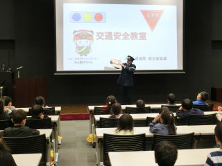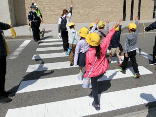 | 4月17日(木) 【交通安全教室】 1年生がトラックセンターにて、交通安全教室に参加しました。 横断歩道は、右を見て、左を見て、もう一度右を見て。 |