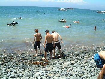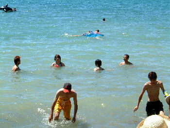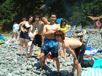 午前11時頃に到着〜! 本当はお隣の砂浜を予定していましたが あまりの混雑で断念。 今回の企画者、竹ちゃんはとても悔やんでいましたが 皆さんご覧の通り、楽しめた様子なので、満足でした! この後、夕暮れ前まで海辺にいました。 |