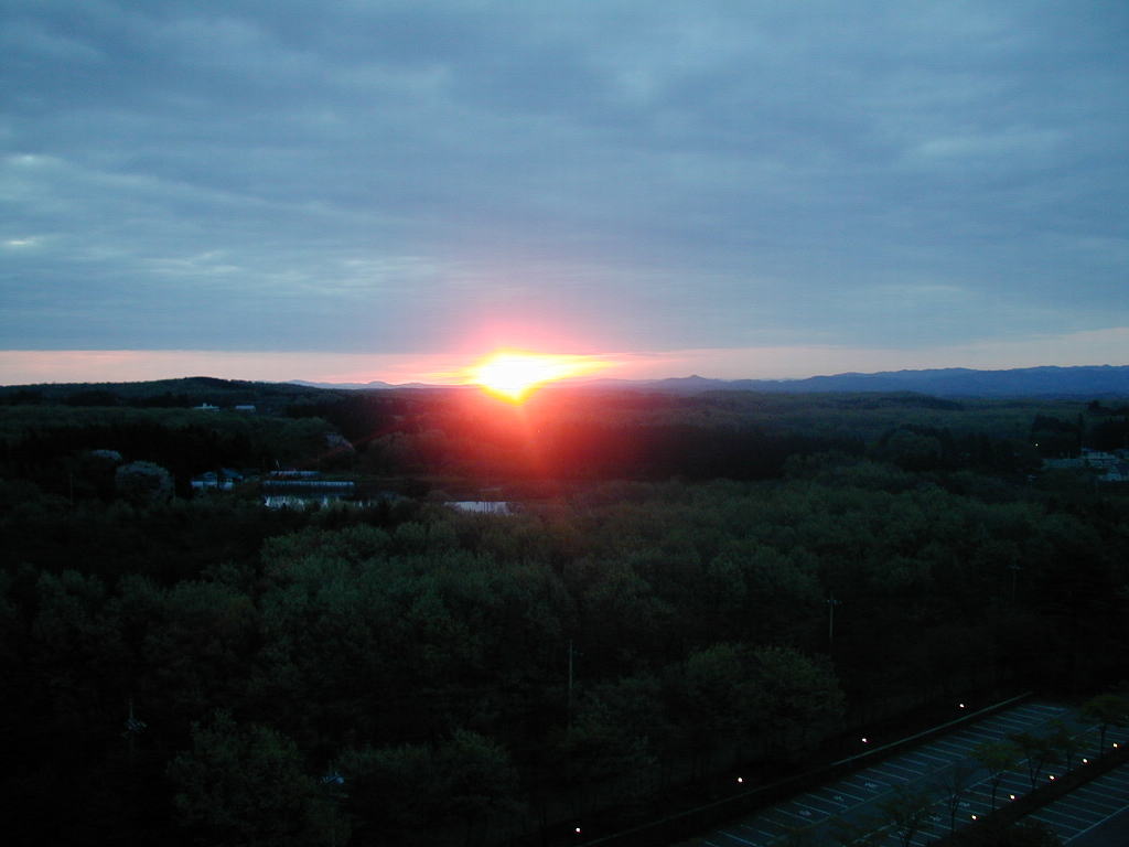 窓辺が赤い! カーテンを開くと丁度日の出だった