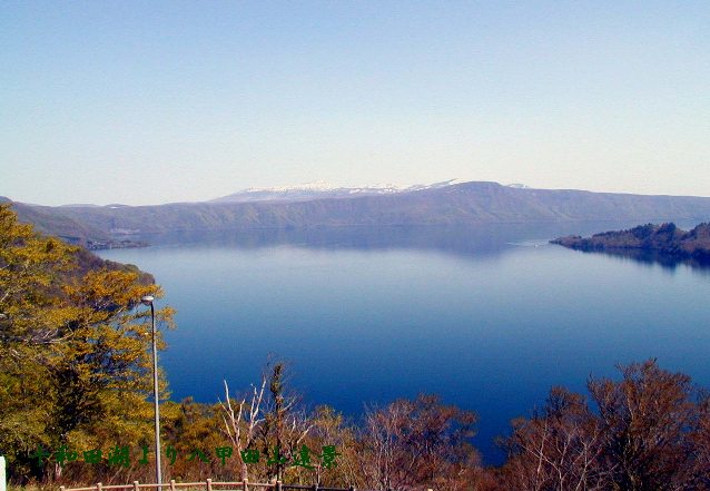 発荷峠より十和田湖を見る 遠くの雪をかぶった山は八甲田山だ