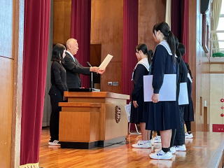 1・2年生が体育館に集まり、本年度を締めくくる修了式が行われました。凛と張り詰めた空気の中で、北中太鼓の演奏で始まり、各学年の代表生徒が校長先生より修了証を授与されました。その後、この1年の振り返りを2名の代表生徒から発表されました。自身に与えられた役割を全うすることの大切さ、支え合える仲間のありがたさ、北中学校の伝統を繋いでいくことの重要性をそれぞれが力強く全校へ向かって発表しました。 最後に、校長先生からは、在校生の成長ぶりに感謝するとともに、次の目標を持つことが必要だというお話がありました。 |
