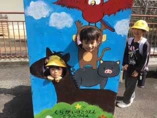 図工で思い思いの世界観を形にして、作品に仕上げました。剣道をモチーフに作った子は、「これは剣道をしているところで、ちゃんと赤白の旗を上げれるようになっているんだよ」、「メリーゴーランドで、真ん中だけ工夫したんだよ」と嬉しそうに話してくれました♪ |