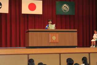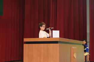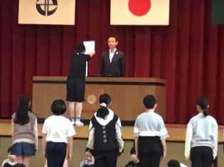 また、式の中では、2・4・6年生の代表児童による前期の振り返りもありました。どの児童も前期のがんばりが後期につながるような内容で、大変りっぱに発表することができました。
