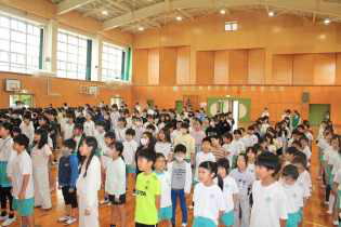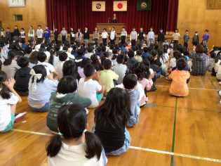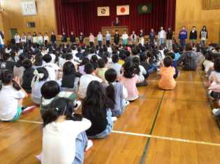 本日は、日頃お世話になっている地域の方に感謝の気持ちを伝える集会を行ったあと、前期を締めくくる終業式を行いました。