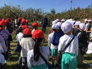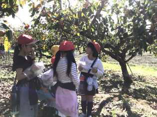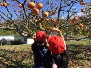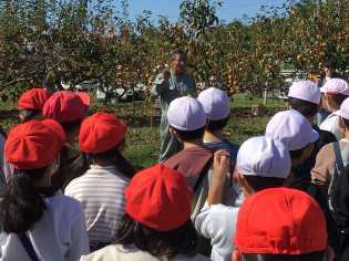 柿畑の見学に行きました。好天にも恵まれましたし、たくさんのボランティアの皆さんに支えられて安心して活動することができました。一人に2個の柿をお土産にいただくことまででき、満足した表情で学校に戻って来ました♪ |