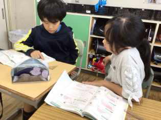 1年生は、「七五三はなんて読むんだろう?」、「これはしーそーだから、シイソウかな?と一生懸命に書こうとがんばっていました。3年生と5年生では、本文から感じることを話し合っており、学習の積み重ねの差を感じました。運動もよいですが、「学習の秋」にしたいですね♪ |