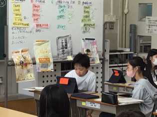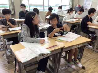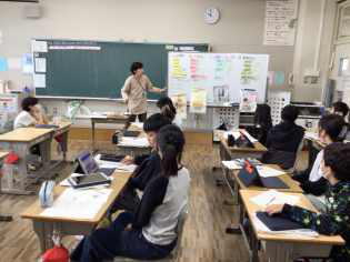 家庭科では、「調理実習ではどのお米を使いたいですか」とさまざまな情報を基に考える授業を行いました。タブレットを準備するときも片付けるときも静かに動いたり、発言する友達の方に顔を向けて一生懸命に聞いたり、当たり前のことかもしれませんが、学級のよさをたくさん発揮していました。米を選ぶ基準も、それぞれの思いがあり、大変興味深い授業でした。