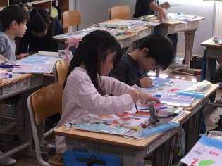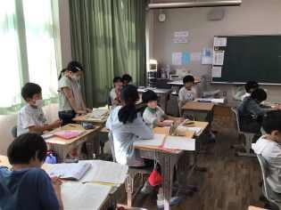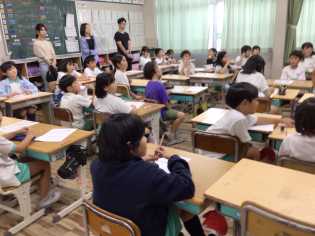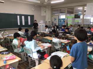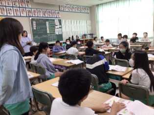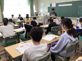 1年生の教室では、カタカナや漢字の学習、3年生の教室では、「サーカスのライオン」、5年生の教室では、「注文の多い料理店」と学年に応じた内容の授業を行っていました。