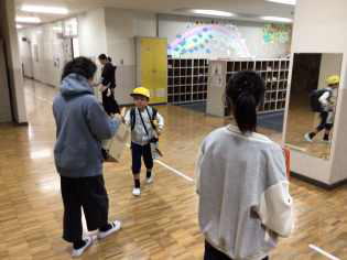 1つ目は、内輪差のことでした。内輪差とは車が右左折するとき後輪が前輪より外側を通ることです。後ろのタイヤが風船を踏みつぶしていく様子を見ました。2つ目は、死角のことでした。高いダンプカーの運転席からは、近くにいる子どもが全く見えないことを知りました。交差点で待つとき、大きな車の近くを通るときに気を付けることを学び、これからの交通安全に生かしていき、自分の命を守ってほしいです。 |