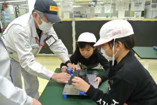スマイル学習で、SGDsの学習に力を入れいている4年生は、トヨタ自動車明知工場に見学に行きました。からくりのしくみについて説明を聴き、実際に見て興味津々でした。