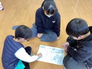 子どもたちが、こまとなる消しゴムを持って集まり、他学年の子たちと、すごろくでこまが止まったところの話題で盛り上がりました。委員ではない6年生も、下学年の子たちを楽しませていました。