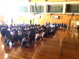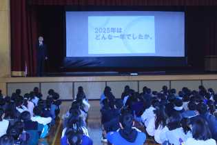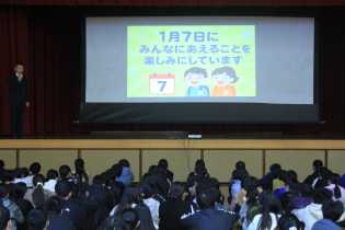 集会に続いて、生徒指導の先生から冬休みの生活についてお話がありました。元気に気持ちよく過ごすためにも心に留めておきたい内容のお話でした。