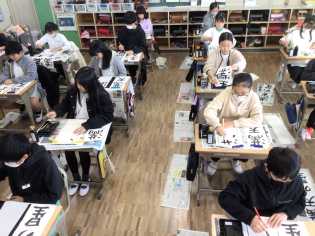 書写の学習の時間には、来年に行われる書き初め大会に向けて練習を進めています。6年生は、「満天の星」に取り組んでいます。手本をしっかり見て、筆遣いを意識して、丁寧に取り組んでいます。書き初め大会後、ホールに全学年の作品を展示いたしますので、子どもたちの成長を感じてください。 |