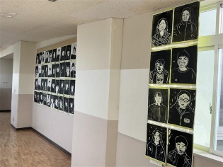 図画工作科「版画」の学習では、自画像に取り組みました。自分の顔をスケッチして、彫刻刀で彫り進め、白色と黒色で表現しました。特徴をつかみ、とても上手に仕上がりました。