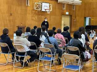 令和8年度に入学予定の園児の皆さんとその保護者をお迎えして、入学説明会を実施しました。園児の皆さんが、1年生との交流会のために、1年生の教室に移動した後、保護者の皆様は、ホールにて、説明を聞きました。説明会を終えると、道具箱や数のおけいこセット、体操服を購入する場所に移動しました。
