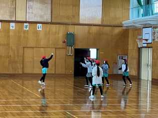 冷たい空気に包まれた体育館では、1年生の元気な声が響いていました。