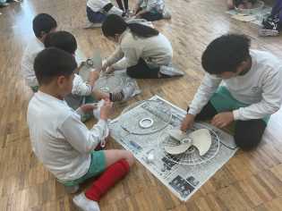 図画工作科では、「どんなうごきにみえるかな」をテーマに、紙を折ったり、切ったりすることで、思い思いのものをつくっていました。同じ材料を使っているのに、蛇や恐竜のような強い生き物からひらひらと華麗に舞うチョウなど、世界に一つだけの作品ができ上がっていくのが不思議です。