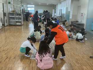 朝の時間に、体育委員会が企画した「なかよし集会」を実施しました。インフルエンザなどの流行で延期になっていた集会をようやく行うことができました。けがなく、安全に楽しめるように考えて、全校で「もうじゅうがり」を行いました。