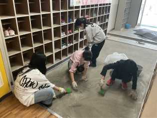 普段は手が届かないのであきらめていた窓の高いところや、昇降口の溝の中、数えきれないくらい歩いた廊下など、6年間の思い出に浸りながら隅々までぴかぴかにしました♪