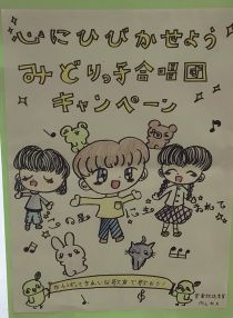 音楽放送委員が朝の時間にキャンペーンの告知に来ました。「心にひびかせよう みどりっ子合唱団」キャンペーンです。11月15日(土)開催予定のみどりっ子フェスタを成功させようと、開会式で全校合唱に取り組む「この星に生まれて」を毎朝学年で合唱しています。歌うときの自分なりのめあてを考えたり、学年合唱をタブレットで録音したりします。そのめあてや録音した合唱をお昼の放送で紹介します。