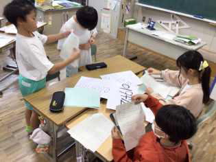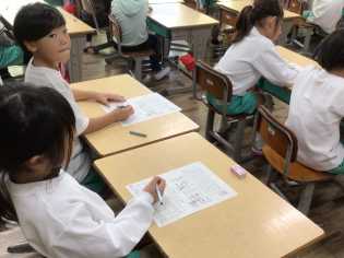 国語科の学習では、漢字ノートを使って、「入る」「入れる」などの漢字の学習に取り組みました。送り仮名が変わると読み方が変わります。マスを正しく使って、覚えようと丁寧に書きました。