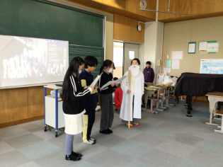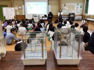 鳥かごで有名なHOEI様に来校していただき、出前授業を受けました。本物の鳥が入った鳥かごまで持参していただき、子どもたちに分わかりやすく、丁寧に説明していただきました。 |
