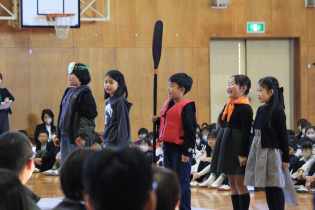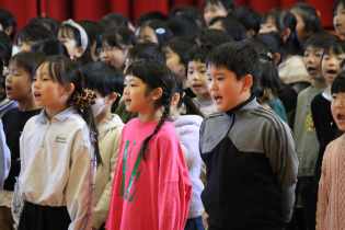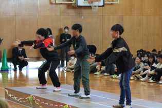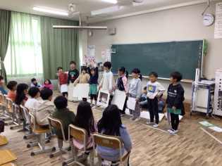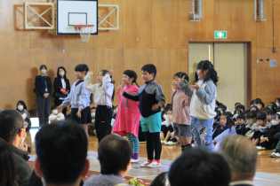 3~6年生は、目の前に他の学年の子がいることで緊張する子もいましたが、練習の成果を発揮しようとがんばっていました。1・2年生は感染それぞれの学年で互いの発表を見合いました。