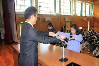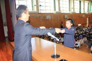 また、夏休み中に取り組んだ作品募集(防火ポスター、書道等)で、優秀な成績を収めた子どもへの表彰伝達を行いました。
