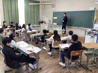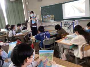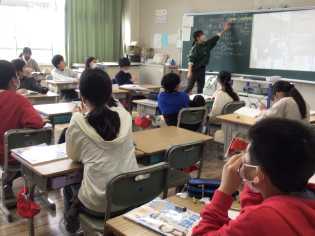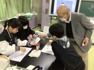 理科「土地のつくりと変化」の学習では、講師の先生をお招きして学びました。1500万年前には、この辺りまで、瀬戸内海から海がつながっていたことを知り、驚いていました。また、礫、砂、泥や化石などを実際に触ったり、標本づくりにも取り組んだりしました。 |