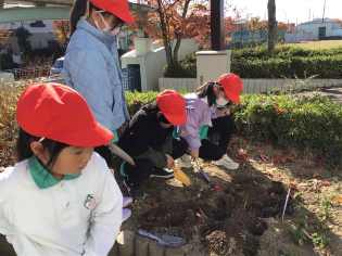 パンジーの苗を花壇に植えました。どんな色の花が咲くのか、今から楽しみですね♪ |
