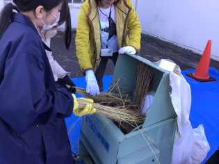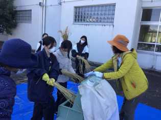 【5年生しめ縄飾りづくりのための準備の様子】 |