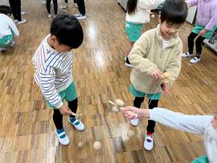けん玉やあやとり、いろはカルタなど昔から伝わる遊びに夢中になっていました。子どもたちが楽しみながら、伝承していってくれることがうれしいです♪ |