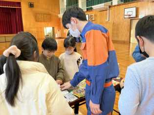 【6年生による避難訓練事前指導の様子】
