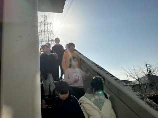 理科の学習では、空気の温まり方を学習する単元で、床と天井近くの温度を温度計で計測しました。脚立に登るときに、「高所恐怖症なんだけど・・・」と言いながらも仲間のためにがんばって高いところの温度を計測している子もいました。 |
