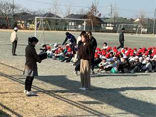 強い風はありませんでしたが、どんよりとしたした曇り空の下、冷えた空気に包まれながら、元気に運動場で遊ぶみどりっ子がたくさんいました。