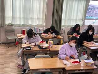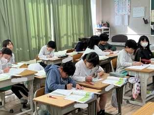 【校内書き初め大会の様子】