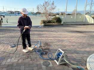 今朝の気温は、氷点下でした。ひょうたん池には、氷がはっていました。そんな寒い中でも、子どもたちはとても元気に外で活動しています。環境委員は、朝の水やりをしていました。サッカーやドッジボール、おにごっこを楽しむ子もいました。 |