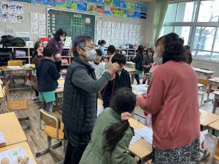 「おかわりがほしい!」と言っている児童も多く、苗植えや稲刈りなど米作りのごく一部しか関わっていないものの、自分たちが育てたおいしいもち米だという思いがあふれ出ていました。中には、「米一粒も残さないようになりました」と米に対する見方や考え方が変わったことを発言する児童もいました。