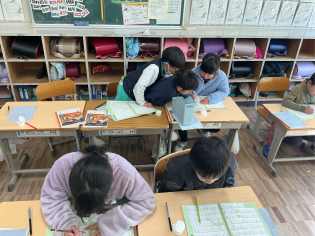 2026年の初日ですが、普段の学校の景色が戻ってきました。写真は、1・2年生の書写、1年生の生活、5年生の国語、6年生の社会です。