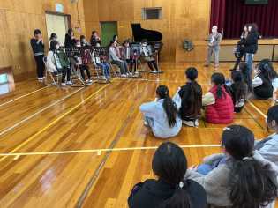 音楽の時間には、来週予定している入学説明会のときの園児との交流会のための演奏の練習をしました。すずやトライアングル、鍵盤ハーモニカ、タンブリンやカスタネットを使って、心を一つにして「こいぬのマーチ」を演奏しました。とてもそろっていました。きっと園児の皆さんが、喜ぶと思います。 |