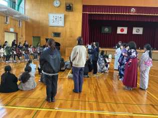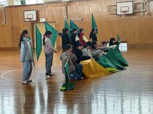 楽しかったクラブの活動も残り2回となり、「音楽・オカリナクラブ」と「カラーガードクラブ」は、まとめの発表会を行いました。和装で着飾った「日本文化・着付けクラブ」の子どもたちもかけつけ、これまでの練習の成果を発表しました。
