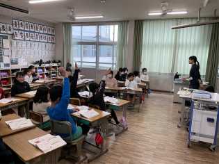 好天に恵まれ、温かい天候での避難訓練になりました。今回は、昼休みに地震が発生したケースで訓練を行いました。運動場で遊んでいた子どもたちも、急いで安全な場所にしゃがみ、自分の身を守る行動をしていました。訓練後に教室に戻ると各学級に6年生が行き、事後の振り返りを行いました。6年生からは、「避難訓練に点数をつけると□点と□点しかありませんが、何点でしょうか」と後輩たちに質問して、振り返りを締めくくっていました。
